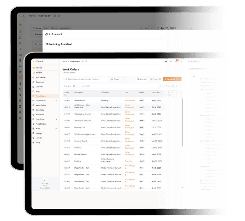 Xytech Operations delivers resource and production scheduling, personnel planning, cost tracking, quoting and invoicing, and timecards and planning in a single, connected environment. Built on over 30 years of operational expertise in broadcast environments, it gives organizations the visibility and control to schedule people and equipment precisely, keep projects on budget, and maintain operational clarity across every concurrent production.