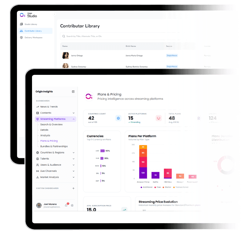Origin Insights delivers AI media analytics and entertainment market intelligence for strategic decision-making. With over 1.5 billion data points captured, 600+ streaming platforms monitored, and 249 countries covered, it provides real-time content insights, audience demand trends, platform availability insights, and media pricing and plan data that give executives the metadata-powered market intelligence to move faster and with greater confidence. Now accessible via Claude MCP, Origin Insights lets teams query the global entertainment landscape in plain language — turning hours of research into seconds.