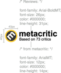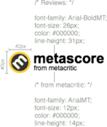 4. Displaying Metascore with wordmark (text only). Metascore with the Metacritic logo, wordmark and review count. Used in connection with a title (movie, game, show or album) on a 3rd party site or application. Styling of the phrases "metascore" and "Based on N critics" may be customized to match the styling of the 3rd party site or application.