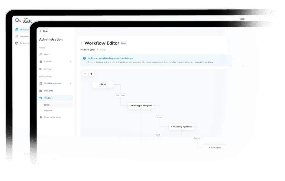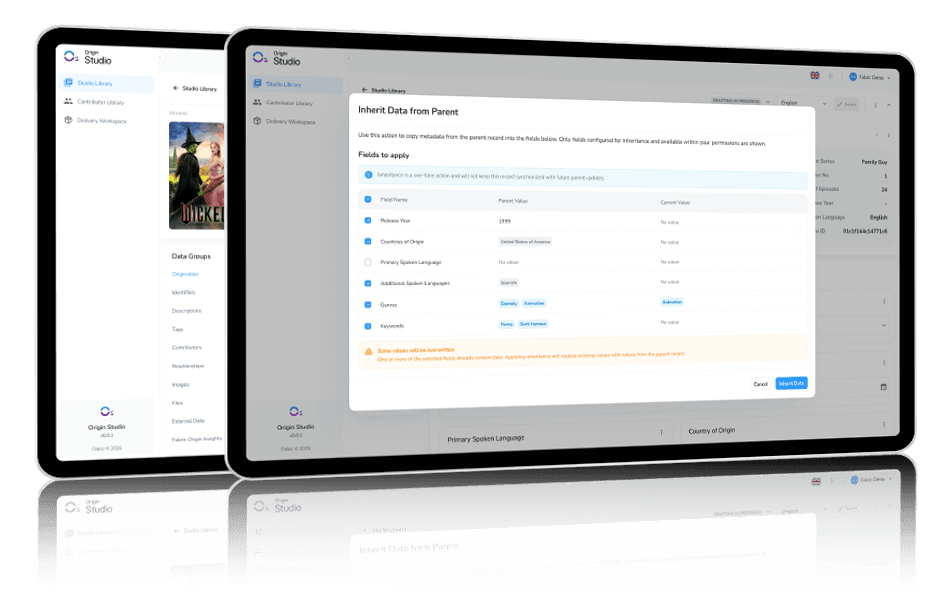 Origin Studio helps media organizations replace fragmented spreadsheets, disconnected systems, and manual workflows with a single, governed metadata platform.